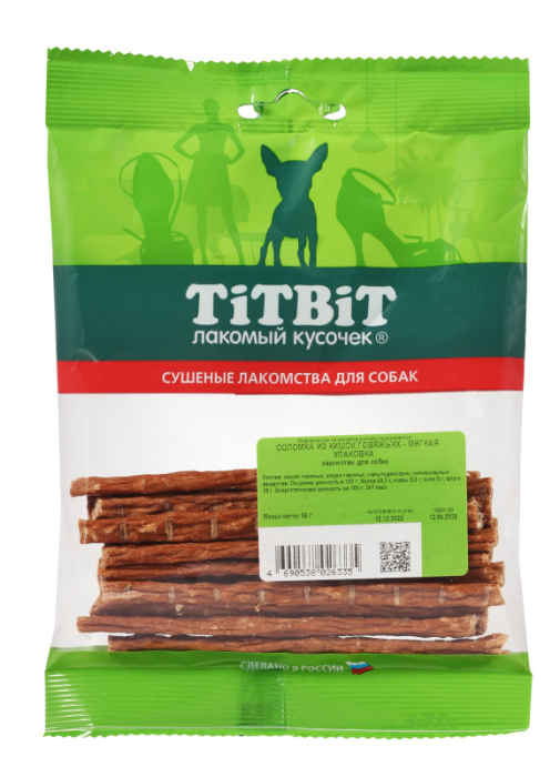 Сухая соломка из говяжьих кишок. Упаковка содержит от 22 до 27 штук длиной 9 см. Это легко усваиваемое лакомство, богатое витаминами и ферментами, полезными для микрофлоры кишечника крупного рогатого скота. Имеет высокую энергетическую ценность благодаря повышенному содержанию жира. Содержит переваримые протеины с полным набором незаменимых аминокислот, которые усваиваются на 90-95%. Также богата минеральными веществами, включая кальций, магний и фосфор, а также жирорастворимыми и водорастворимыми витаминами. Очищает зубы у мелких пород собак и полезна для стимуляции пищеварения.