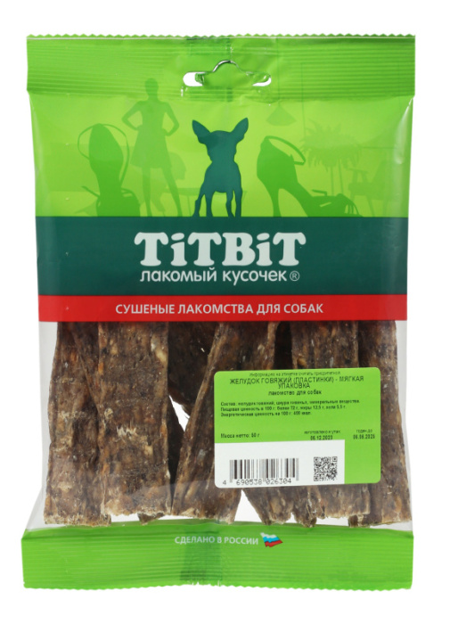 Высушенные пластинки желудка говяжьего. Упаковка содержит 9-11 пластин длиной 9 см. Желудок говяжий содержит большое количество ферментов, витаминов группы «В» и полезных микроорганизмов. Употребление продукта способствует улучшению микрофлоры питомца. Лакомство изготовлено из натуральных субпродуктов, высушенных по специальной технологии, что позволяет сохранить все полезные свойства продукта