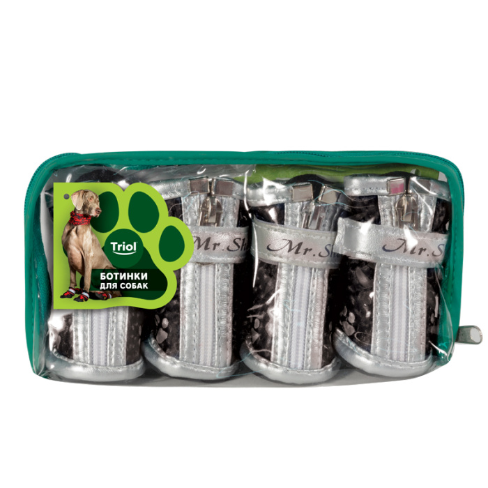 Комплект ботинок для собак с модным принтом и функциональной прорезиненной подошвой - незаменимый аксессуар индивидуальной защиты лап животного от воздействия агрессивных жидкостей, дорожных химреагентов, бензинов и масел на проезжей части дорог. Прочные, комфортные и непромокаемые, они сохраняют лапы собаки чистыми и сухими в ненастную погоду и защищают их от истирания о твердое покрытие при длительных и интенсивных нагрузках.