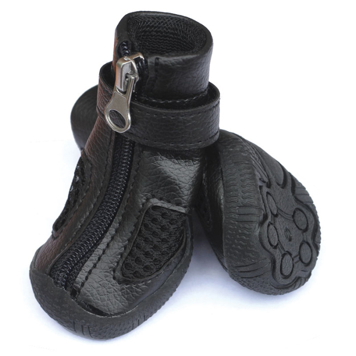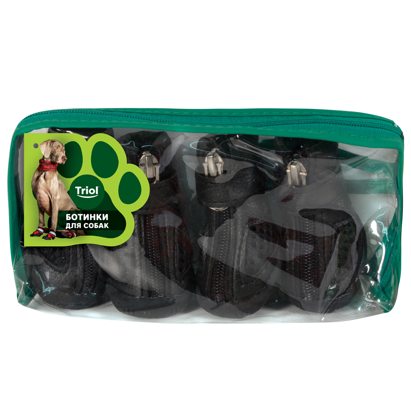 Комплект из 4-х ботинок для собак с функциональной прорезиненной подошвой - незаменимый аксессуар индивидуальной защиты лап животного от воздействия агрессивных жидкостей, дорожных химреагентов, бензинов и масел на проезжей части дорог. Прочные и комфортные, они сохраняют лапы собаки чистыми и сухими в ненастную погоду и защищают их от истирания о твердое покрытие при длительных и интенсивных нагрузках. Размер изделия: 40х40х40мм. Цвет: черный.