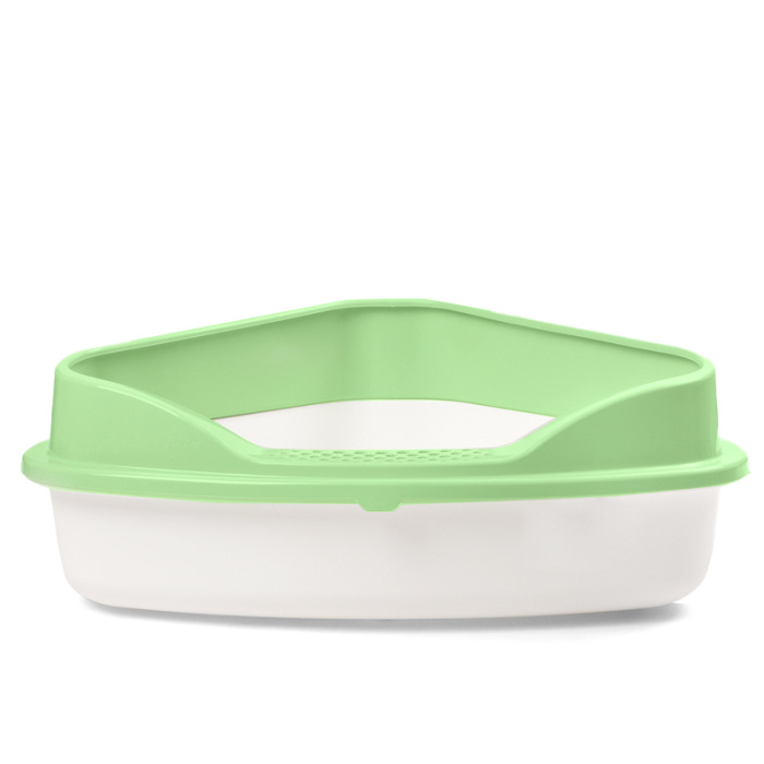 Пластиковый туалет для кошек угловой с бортом - незаменимая вещь, если вы используете наполнитель. Благодаря высоким бортикам ваш пол останется чистым, а ваш питомец не будет ограничен в удовлетворении своих инстинктов. Дополнительным преимуществом является удобный выход с защитной сеткой, предотвращающей высыпание содержимого лотка. Туалет изготовлен из износостойкого пластика, легко моется под струей воды и не впитывает запаха. Цвет поддона: белый. Цвет борта: фисташковый. Размер: 575*465*220мм.