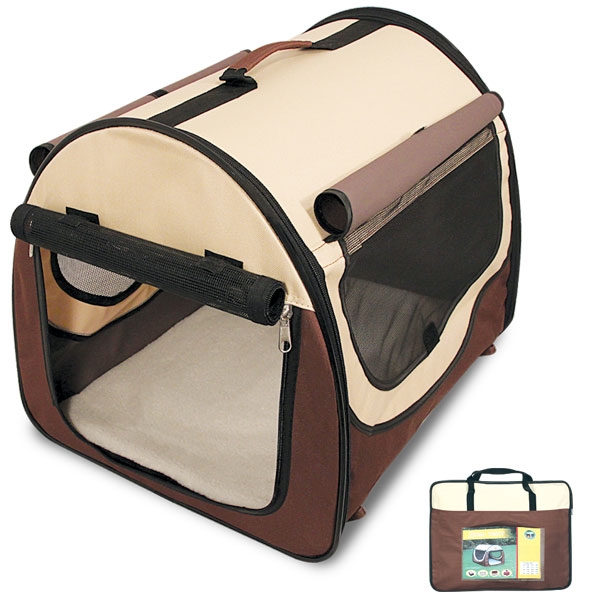 Складной дом-тент для животных - оптимальное решение для отдыха за городом, работы на выставках и для комфортной транспортировки питомца в автомобиле. Тент овальной формы оснащен большим вентиляционным окном и просторным входом, которые легко закрываются на молнию. В комплекте изделия также есть съемная подстилка, очень удобная для отдыха животного. Тентовое покрытие изготовлено из прочного синтетического экоматериала, а сама конструкция легко складывается в удобную сумку, не занимая много места. Цвет изделия: бежево-коричневый. Размер: 770х570х630мм.