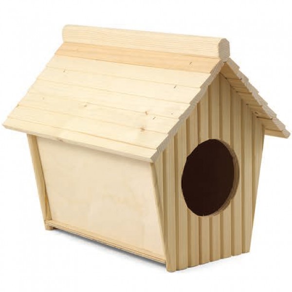 Большой деревянный домик идеально подходит для купания шиншилл. Крыша легко снимается, обеспечивая удобный доступ для уборки и подсыпания песка. Крупное отверстие обеспечивает свободный проход внутрь изделия. Домик изготовлен из натурального дерева высшего качества, без скобок и гвоздей, без окрашивания, поэтому его легко можно раскрасить или декорировать на свой вкус. Габаритные размеры конструкции - 32х25,5х30 см.