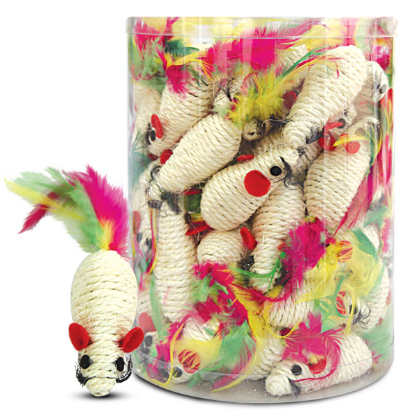 Игрушка для кошек "Мышь" (туба 72шт.) Игрушки из сизаля пользуются особой популярностью у кошек, ведь о них можно не только поточить коготки, но и весело поиграть гоняя по полу лапкой или покусывая зубами.