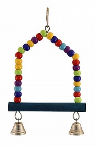 Игрушка-качели для птиц в виде качелей из бус и 2ух колокольчиков. Крепление: карабин. Цвет: в ассортименте. Размер:220*155мм.