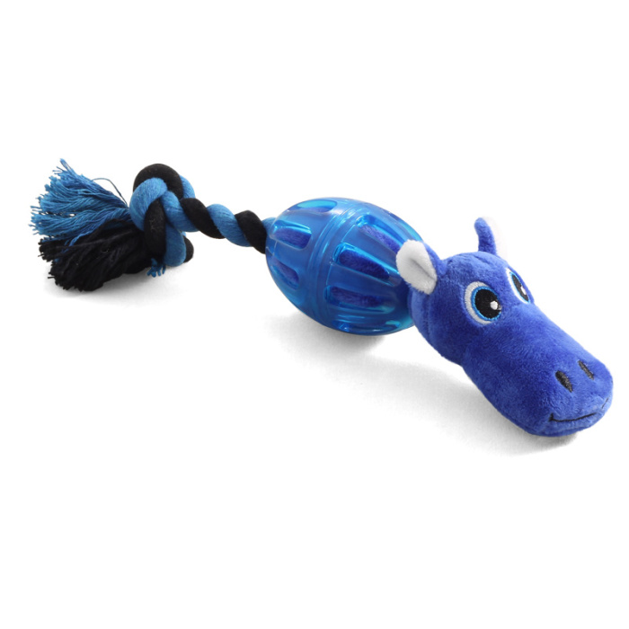Мягкая и прочная, яркая и оригинальная – эта игрушка станет любимым развлечением для вашего питомца! Мягкий полиэстер приятен на ощупь и функционален, а корпус из термопластичной резины не боится механических повреждений и выдерживает даже самые активные игры. Игрушка в форме бегемотика выполнена из высококачественных материалов, что гарантирует безопасность животного. Цвет: синий. Размер изделия: 220мм.