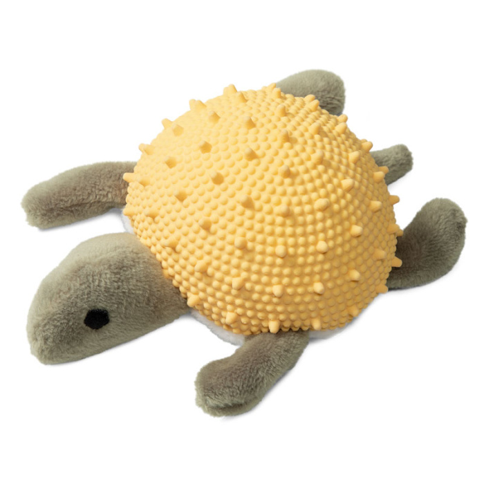Мягкая игрушка "Черепашка" – это комбинация двух материалов: плюша и латекса. Мягкий плюш приятен на ощупь и функционален, а спинка из латекса отлично очищает зубы и массирует десны. Изделие отлично подходит для собак мелких и средних пород, а также - для щенков в период прорезывания зубов. Такую игрушку удобно таскать в зубах и прятать в самых укромных уголках! Внутри игрушки расположена пищалка, которая вызывает интерес у питомца и пробуждает его охотничьи инстинкты. Игрушка выполнена из высококачественных материалов, что гарантирует безопасность животного. Цвет: желто-зеленый. Размер изделия: 120*75*45мм.