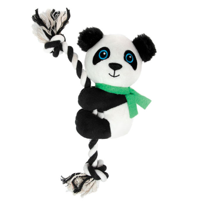 Мягкая игрушка "Панда" станет отличным подарком вашей собаке. Она состоит из двух частей: коалы, сшитой из шелковистого плюша, и плотной веревки, свитой из множества прочных ниток, за которую собаке будет удобно ухватиться. Собаки постоянно испытывают потребность что-то грызть, а игрушки с веревками и жгутами отлично подходят не только для удовлетворения животных инстинктов, но и для профилактики заболеваний ротовой полости – такая игрушка поможет сформировать привычку правильно жевать. Пищалка внутри игрушки поможет надолго увлечь животное интересной игрой. Размер: 155 мм / 290 мм (с веревкой)
