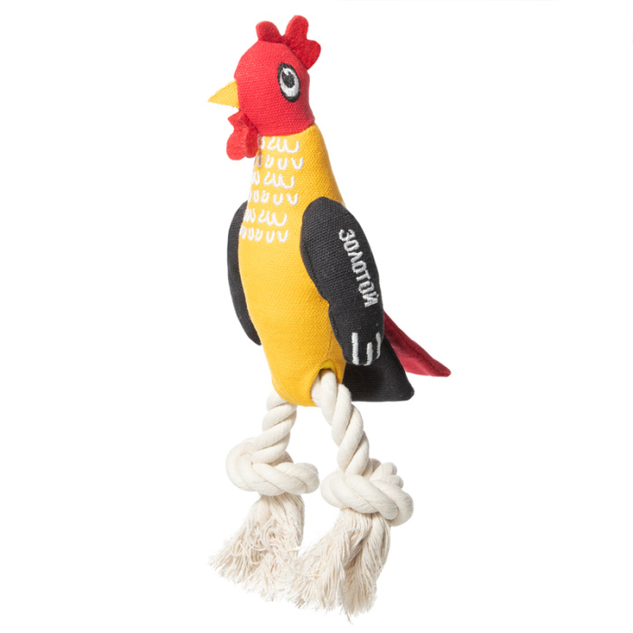 Игрушка для собак по мотивам русских сказок, с вышитыми элементами и пищалкой внутри. Веревочные ноги не закреплены, могут перемещаться от одного узла к другому. Игрушка отлично подойдет для игр в "перетяжки". Любимый сказочный персонаж и необычная упаковка изделия никого не оставят равнодушным! Цвет: желто-красно-молочно-черный. Размер: 155 мм / 230 мм (с веревкой)