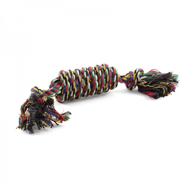 Плетеная игрушка для собак сделана из разноцветных веревок из натурального хлопка. Способствует тренировке жевательных мышц у собаки. Цвет: разноцветный. Размер d40*300мм.