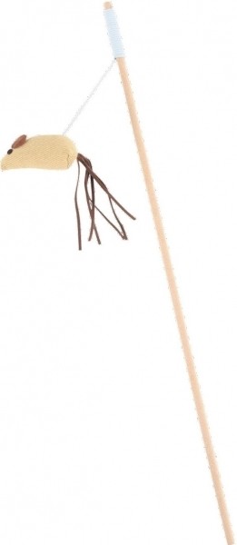 Удочка-дразнилка для кошек из дерева с игрушкой в виде мышки из хлопка - натурального материала, обладающего хорошей воздухопроницаемостью. Длина ручки: 400мм, размер мыши: 30*20*60/140мм.