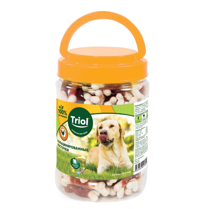 Кальцинированные косточки с курицей – это полезное угощение для профилактики зубного камня, здоровья структуры костных тканей и обеспечения функциональности кровообращения, обогащенное кальцием, фосфором и железом. Косточки расфасованы в пластиковые банки, благодаря чему потребитель может выбрать: покупать целую банку или поштучно. Банку с эргономичной ручкой удобно хранить и легко транспортировать. Вес нетто 450г. В банке 85-90 косточек.