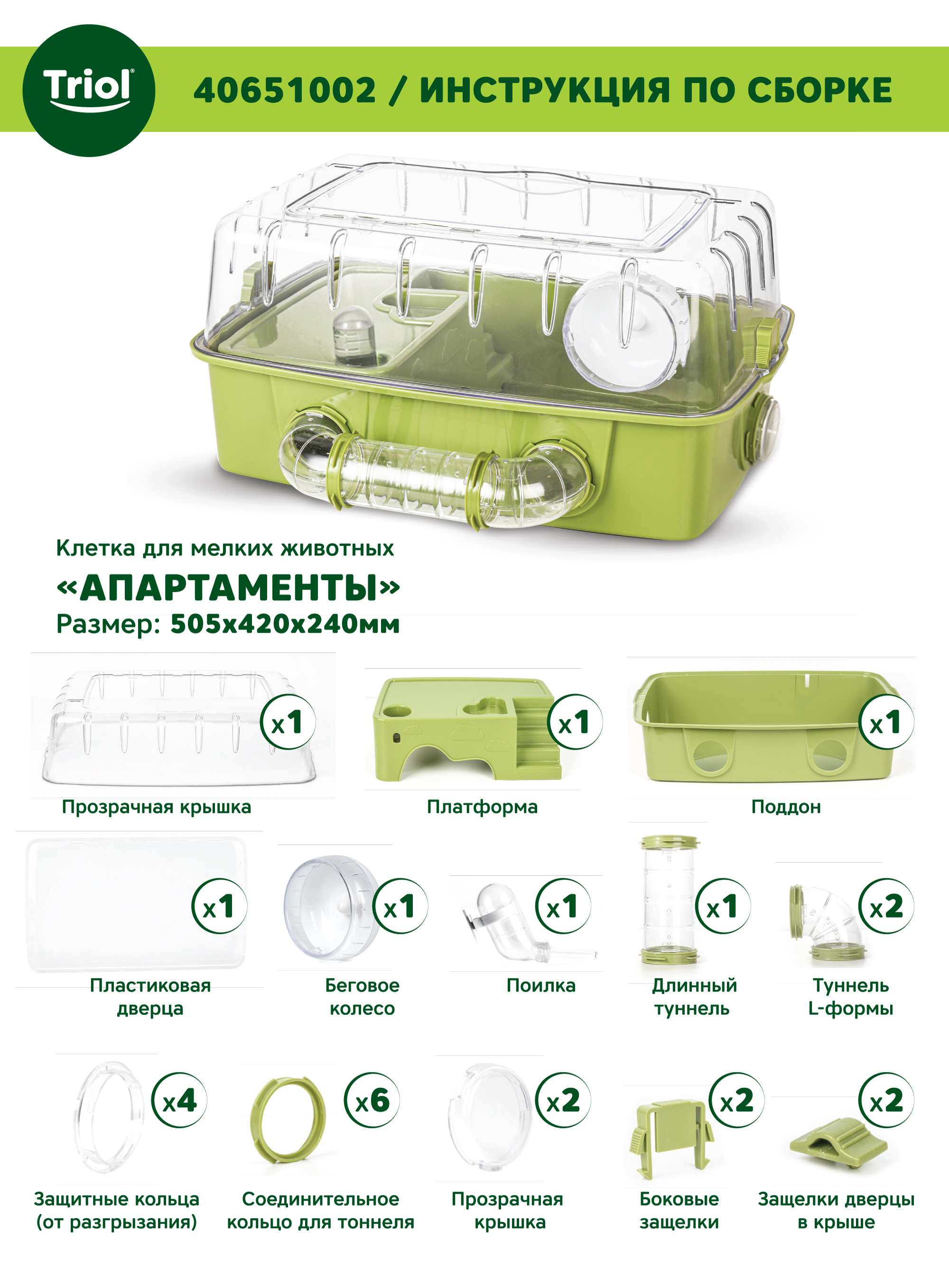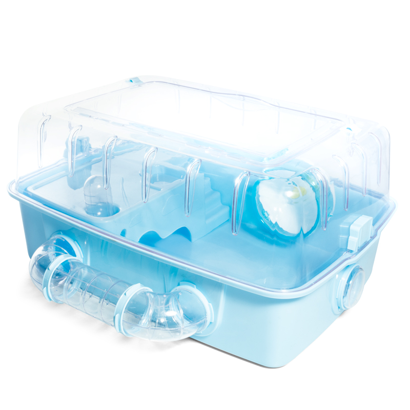 Благодаря универсальному дизайну клетка «Апартаменты» впишется в любой интерьер. Прозрачный корпус изделия позволит свободно наблюдать за жизнью любимца. Запасная металлическая дверца-решетка, входящая в комплект, может заменить пластиковую дверцу на крыше клетки. Труба-туннель, беговое колесо и верхний уровень с лесенкой не дадут скучать маленькому питомцу. Вставная пластиковая деталь послужит домиком для обитателей клетки. Изделие прослужит максимально долго, так как изготовлено из высококачественного безопасного материала. Цвет: оливковый, голубой. Общий размер изделия с трубой: 505*420*240мм, ширина клетки (без трубы) 330мм.