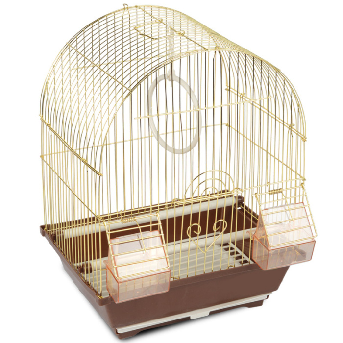 Эффектная клетка для птиц с фигурной крышей - полезный аксессуар для владельцев пернатых питомцев. Прочная и удобная, такая клетка занимает совсем немного места и отвечает всем потребностям пернатых. В комплектацию изделия входят 2 внешние кормушки, 2 жердочки и качели. Клетка оборудована удобной ручкой для переноски и специальным пластиковым наружным поддоном, облегчающим процесс уборки. Размер изделия: 300х230х390мм.