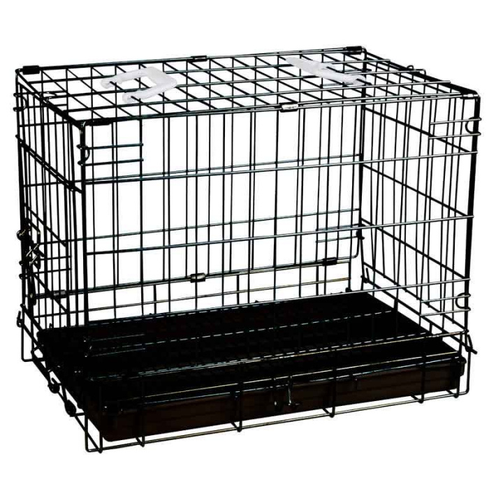 Клетка для животных эмалированная. Легко собирается и разбирается. За счет нижней съемной решетки поддон может находиться как внутри клетки так и с наружи. Поддон пластиковый легко выдвигается для обслуживания. Идеально подходит для временного содержания средних животных, выставки, перевозки. На клетке располагаются две пластиковые ручки для удобной транспортировки. Доступ в клетку через дверь, которая закрывается на надежный засов. Эмалированная клетка устойчива к влияниям внешней среды. Цвет решетки: черный. Цвет поддона: черный. Расстояние между прутьями 31,35мм. Толщина прутьев каркаса и поперечных линий клетки 3,7мм. Толщина продольных прутьев клетки 2,6мм. Размер: 770*560*640мм. Размер дверцы: 40*43см.