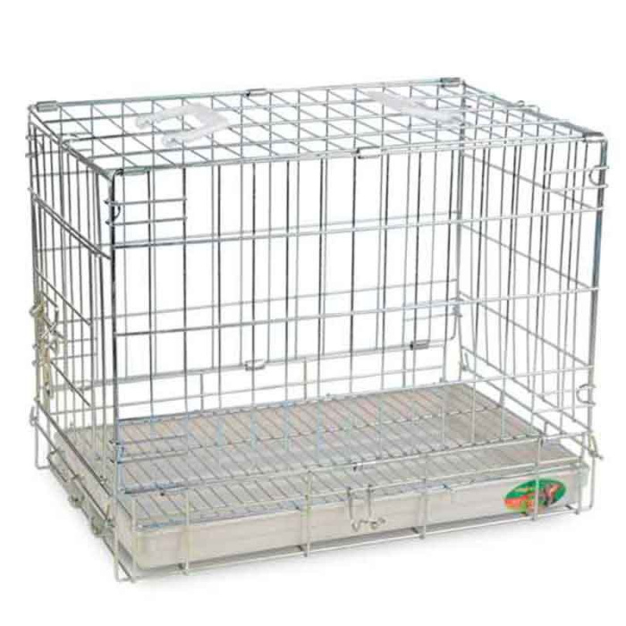Клетка для животных оцинкованная. Легко собирается и разбирается. За счет нижней съемной решетки поддон может находиться как внутри клетки так и с наружи. Поддон пластиковый легко выдвигается для обслуживания. Идеально подходит для временного содержания средних животных, выставки, перевозки. На клетке располагаются две пластиковые ручки для удобной транспортировки. Доступ в клетку через дверь, которая закрывается на надежный засов. Оцинкованная клетка обладает высоким уровнем коррозийной стойкости. Цвет поддона: белый. Расстояние между прутьями 31,35мм. Толщина прутьев каркаса и поперечных линий клетки 3,7мм. Толщина продольных прутьев клетки 2,6мм. Размер: 770*560*640мм. Размер дверцы: 40*43см.