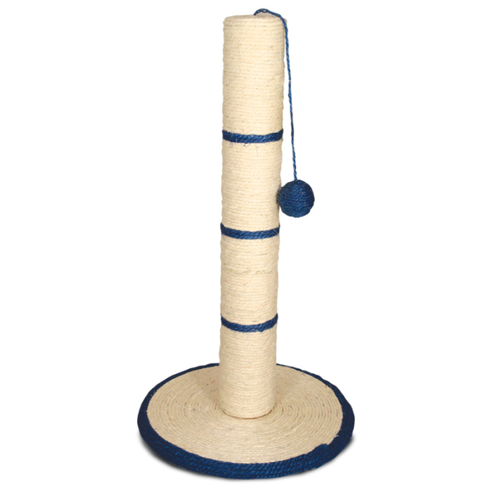 Когтеточки - обязательный аксессуар для личной гигиены кошек, который помогает животным избавиться от шелушащихся слоев когтя, причиняющих дискомфорт подушечкам лап. По своей природе сизаль обладает уникальным антистатичным свойством, следовательно, когтеточка не накапливает пыль, что облегчает процесс уборки. Высокая когтеточка для кошек в виде столбика позволит Вашей кошке насладиться любимым занятием вытянувшись во весь рост. Цвет основания: белый, цвет полосок: синий, цвет шарика: синий. Размер: 350*350*620мм. Диаметр столбика - 80мм.