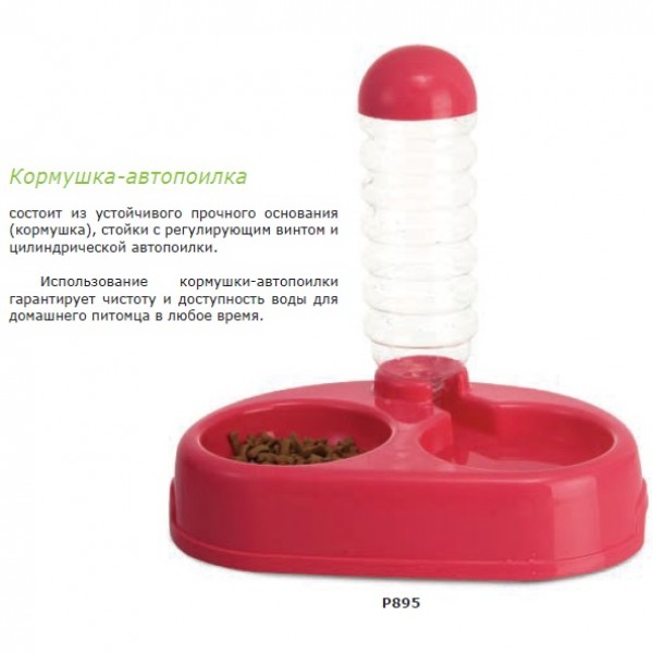 Кормушка-автопоилка - это функциональный аксессуар 2 в 1. Корм насыпается в миску, а вода - в вертикальный стакан. Под действием атмосферного давления вода удерживается в нем и дозированно поступает во вторую миску по мере выпивания животным. Использование кормушки-автопоилки гарантирует чистоту и доступность воды для домашнего питомца в любое время. При этом все элементы кормушки выполнены из качественного пластика и легко разбираются на составные части, что очень удобно при гигиенической обработке и транспортировке изделия. Цвет: малиновый, молочный. Объем: 900мл. Размер изделия: 310х215х300мм.
