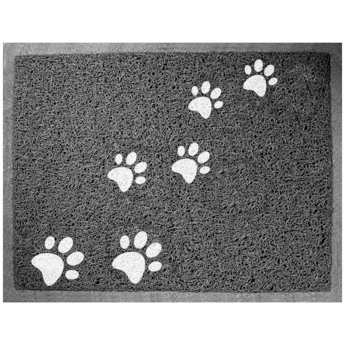 Универсальное решение для поддержания чистоты в зоне лотка вашего питомца - коврик для кошачьего туалета из ПВХ с оригинальным принтом. Остатки наполнителя собираются на поверхности изделия, не допуская распространения по дому. Коврик легко очищается: достаточно вытряхнуть скопившиеся крошки и постелить обратно к туалету. Такой коврик отлично смотрится в любом интерьере. Цвет изделия: серый. Размер изделия: 600*400*8мм.