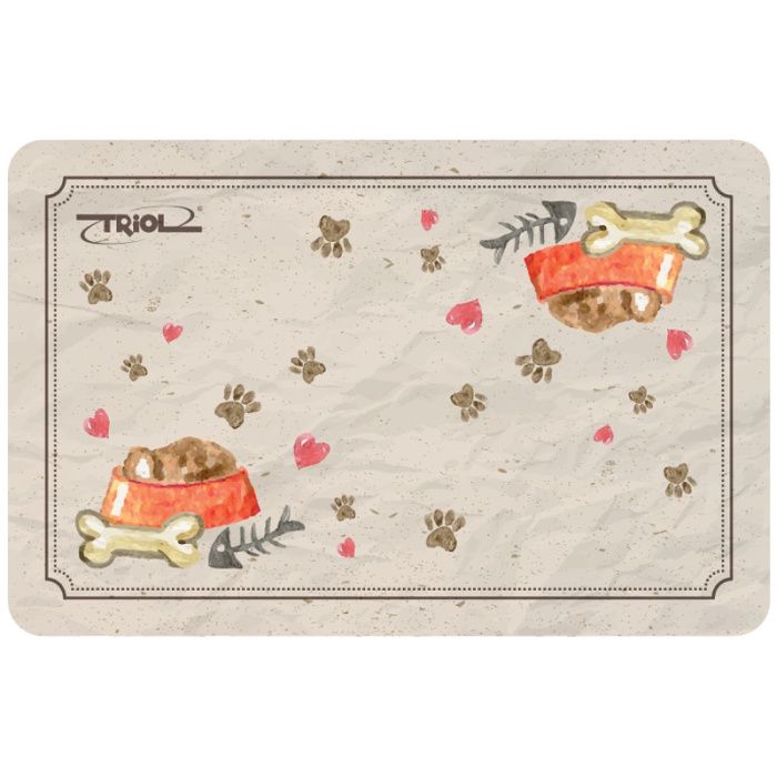Коврик под миску с ярким принтом - незаменимый аксессуар в доме с четвероногим любимцем. Он защищает пол от загрязнений и облегчает уборку после кормления животного, а также сам легко моется и чистится. Благодаря специальной подложке коврик не скользит, поэтому идеально подходит для мисок, не имеющих антискользящих резиновых вставок на дне. А оптимальные габариты позволяют удобно разместить на нем сразу все миски и поилки питомца. Размер изделия: 430х280мм.
