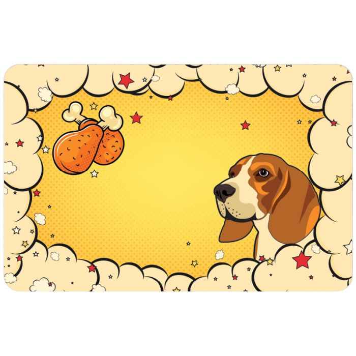 Коврик под миску с ярким принтом - незаменимый аксессуар в доме с четвероногим любимцем. Он защищает пол от загрязнений и облегчает уборку после кормления животного, а также сам легко моется и чистится. Благодаря специальной подложке коврик не скользит, поэтому идеально подходит для мисок, не имеющих антискользящих резиновых вставок на дне. А оптимальные габариты позволяют удобно разместить на нем сразу все миски и поилки питомца. Размер изделия: 430х280мм.