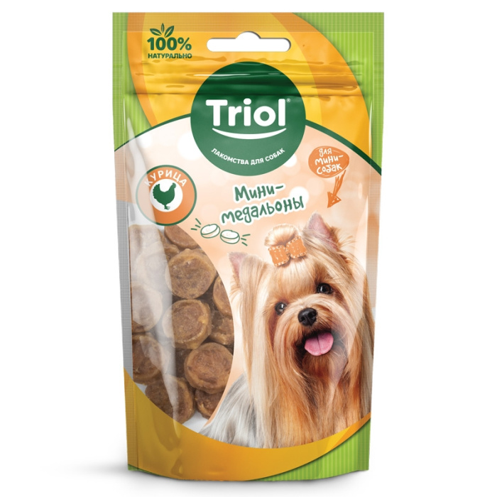 Мини-медальоны из курицы - это вкусное и полезное угощение в миниатюрном формате. Лакомство идеально подходит для щенков и собак миниатюрных пород: легкоусвояемые компоненты позволяют быстро переваривать продукт, не допуская проблем с чувствительным пищеварением. А благодаря удобной дозировке, мини-лакомство отлично подойдет в качестве поощрения во время дрессировки. Вес нетто 50г.