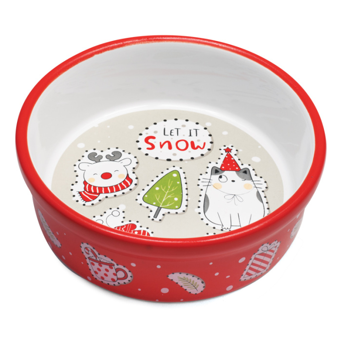 Эта стильная и функциональная миска для кошек выполнена из высококачественной керамики оригинальной расцветки. Такая миска идеально подойдет как для воды, так и для корма любой консистенции. Она комфортна для питомца и легко моется под струей проточной воды с использованием моющих бытовых средств. А выразительный дизайн позволит ей стать отличным подарком питомцу на Новый Год. Цвет: красный. Размер: d дна - 112мм; d верхней части - 125мм; высота - 45мм. Объем 0,25л.