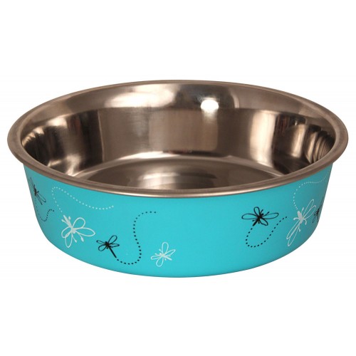 Стильная круглая миска из нержавеющей стали для кошек и собак небольших пород. Она идеально подходит как для воды, так и для корма разной консистенции. Миска комфортна для питомца и легко моется под струей проточной воды с использованием моющих бытовых средств. Прорезиненное основание обеспечивает максимальную устойчивость, препятствуя скольжению изделия во время использования, а оригинальный принт сделает такую миску украшением любого интерьера. Цвет изделия: голубой. Объем: 0,75л. Размеры: 175*175*50мм.