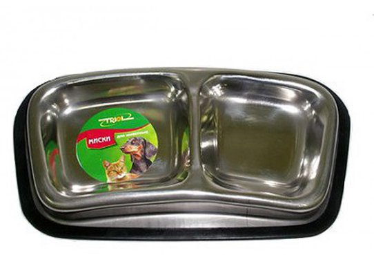 Функциональная двойная миска для кошек и собак небольших пород выполнена из нержавеющей стали. Такая миска - идеальный способ обеспечить питомцу одновременно и свежую воду, и корм. Изделие комфортно для питомца и легко моется под струей проточной воды с использованием моющих бытовых средств. А прорезиненное основание обеспечивает максимальную устойчивость изделия. Размеры: 275*145*35мм.