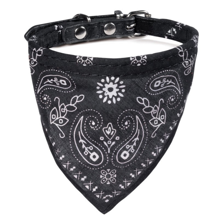Ошейник из искусственной кожи с оригинальным дизайном в виде банданы - стильный и функциональный аксессуар для кошек и собак мелких пород. Изделие выполнено с использованием крепкой металлической фурнитуры и изящного декора. Длину изделия удобно подгонять под индивидуальные параметры животного, а прочное основание ошейника отлично подойдет для крепления поводка, адресника или других аксессуаров. Размеры изделия: 10*310мм. Цвет: черный.