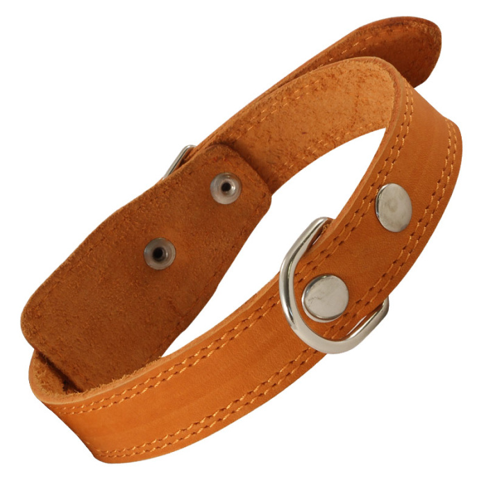 Этот ошейник - стильный кожаный аксессуар для крупных собак и незаменимый помощник для их владельцев. Одинарное изделие выполнено из мягкой, но прочной кожи высокого качества с использованием оригинальной металлической фурнитуры в качестве брутального декора. Предусмотренные отверстия позволяют удобно подгонять длину под индивидуальные параметры животного, а функциональное металлическое кольцо отлично подойдет для крепления карабина поводка, адресника или других аксессуаров. Размеры изделия: 720х36х4мм. Варианты расцветок: бежевый, коньяк, коричневый, черный.