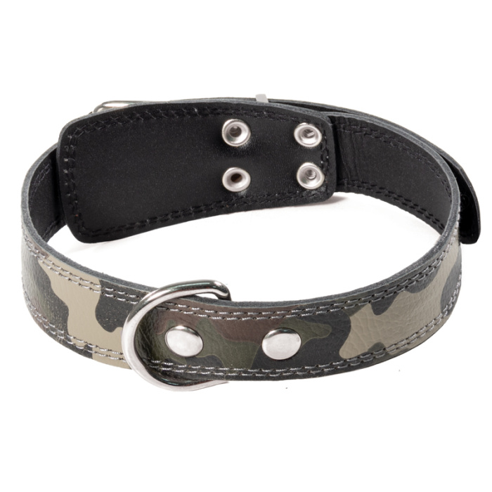 Этот ошейник - стильный кожаный аксессуар для больших собак весом 20-35кг., обхват шеи 55-60см. Варианты пород: английский бульдог (кобель), американский бульдог, стаффордширский бультерьер, питбуль, доберман, ротвейлер, аргентинский дог, родезийский риджбек. Изделие выполнено из мягкой кожи в оригинальной расцветке с использованием крепкой металлической фурнитуры. Предусмотренные отверстия позволяют удобно подгонять длину под индивидуальные параметры животного. Размеры изделия: 630мм*350мм*3мм. Цвет: хаки.