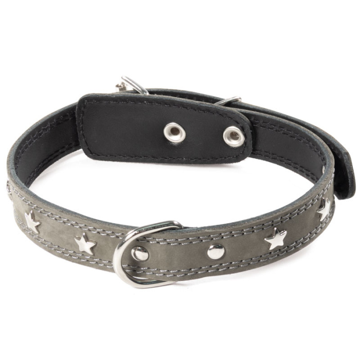Этот ошейник - стильный кожаный аксессуар для средних собак весом 13-20 кг., обхват шеи 45-50см. Варианты пород: стаффордширский бультерьер, французский бульдог,английский бульдог,скотч- терьер , доберман, долматинец, ягт-терьер, бигль, лайка. Изделие выполнено из мягкой кожи в оригинальной расцветке с использованием крепкой металлической фурнитуры и аксессуаров в виде звезд. Предусмотренные отверстия позволяют удобно подгонять длину под индивидуальные параметры животного. Размеры изделия: 570*250*3мм. Цвет: болотный.