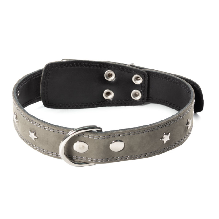 Этот ошейник - стильный кожаный аксессуар для больших собак весом 20-35кг., обхват шеи 55-60см. Варианты пород: английский бульдог (кобель), американский бульдог, стаффордширский бультерьер, питбуль, доберман, ротвейлер, аргентинский дог, родезийский риджбек. Изделие выполнено из мягкой кожи в оригинальной расцветке с использованием крепкой металлической фурнитуры и аксессуаров в виде звезд. Предусмотренные отверстия позволяют удобно подгонять длину под индивидуальные параметры животного. Размеры изделия: 630мм*350мм*3мм. Цвет: болотный.