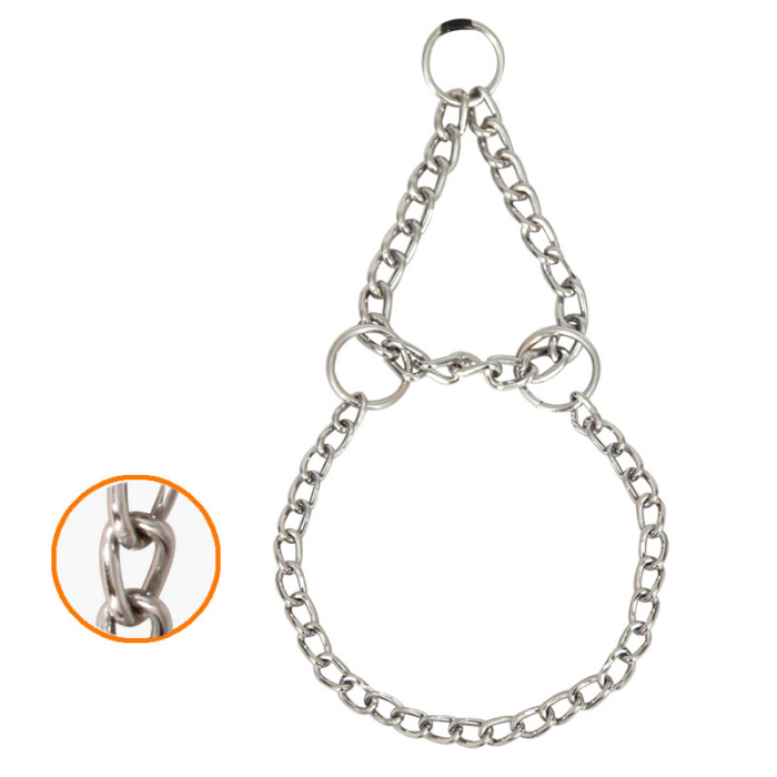 Функциональный однорядный ошейник-удавка из металла - это незаменимый аксессуар для выгула и дрессировки. Ошейник моментально затягивается при натяжении поводка, за счет чего эффективен при дрессировке с целью усиления воздействия на рывках. Аксессуар не перетирает шерсть, так как изготовлен из металла высокого качества, защищен от коррозии, не боится влаги и дождя и легко моется от грязи и пыли. Диаметр проволоки - 2,5мм, длина ошейника - 450мм.