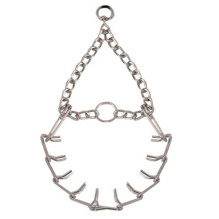 Строгий стальной ошейник-удавка с шипами - функциональный аксессуар для собак средних и крупных пород и эффективная мера воздействия при длительных прогулках и интенсивной дрессировке. Расположенные внутри ошейника шипы позволяют координировать все действия собаки и держать ее под строгим контролем. Диаметр проволоки - 2,5мм, длина ошейника - 500мм, ширина звена ошейника - 19мм. Цвет: хром.