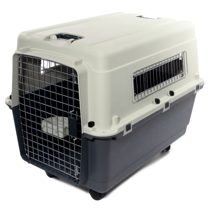 Переноска изготовлена из высококачественного и сверхпрочного пластика; снабжена надежными, скрепляющими корпус винтами и защелками, запираемой металлической дверцей, крепкой и прочной пластиковой ручкой, а также вентиляционными решетками и миской. Колеса в комплектацию изделия не входят и приобретаются отдельно. Изделие одобрено Международной Ассоциацией Воздушного Транспорта (IATA). Цвет: бело-серый. Размер: 801*562*590мм. Максимально допустимая нагрузка: 25кг.