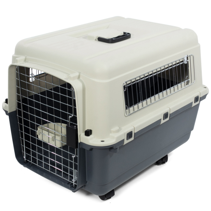 Переноска изготовлена из высококачественного и сверхпрочного пластика; снабжена надежными, скрепляющими корпус винтами и защелками, запираемой металлической дверцей, крепкой и прочной пластиковой ручкой, а также вентиляционными решетками и миской. Колеса в комплектацию изделия не входят и приобретаются отдельно. Изделие одобрено Международной Ассоциацией Воздушного Транспорта (IATA). Цвет: бело-серый. Размер: 675*510*470мм. Максимально допустимая нагрузка: 18кг.