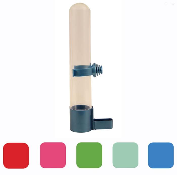 Удобная и практичная поилка для мелких попугаев - то, что нужно для комфорта пернатого питомца. При помощи специального крепления изделие легко и надежно крепится как снаружи, так и внутри клетки. Просто наполните поилку свежей водой, плотно закройте крышку и переверните носиком вниз. Прочная и удобная в эксплуатации, эта поилка выполнена из нетоксичного пластика, поэтому абсолютно безвредна для птиц. Объем: 75мл. Цвет: в ассортименте.