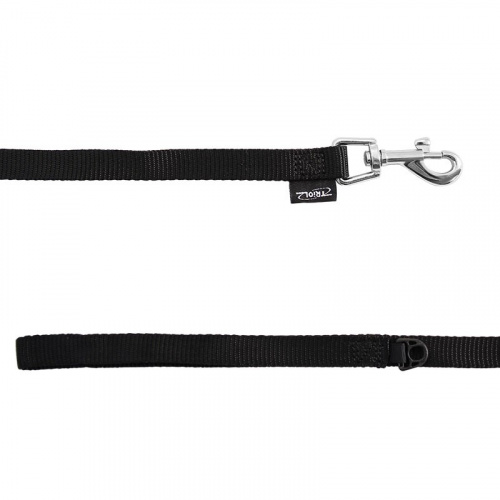 Прочный и функциональный поводок из нейлона - это всегда актуальный аксессуар для владельцев четвероногих питомцев. Высококачественный материал прослужит максимально долго, добросовестно выполняя свою функцию. Изделие выполнено в черном цвете и имеет надежный металлический карабин для крепления поводка к ошейнику. Размеры изделия: 15х1200мм. Цвет: черный.