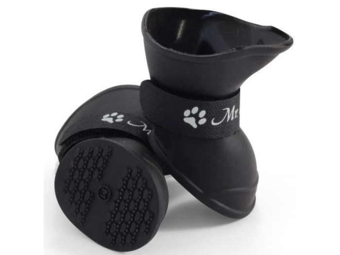 Стильный комплект резиновых сапожек для собак - незаменимый аксессуар индивидуальной защиты лап животного от воздействия агрессивных жидкостей, дорожных химреагентов, бензинов и масел на проезжей части дорог. Прочные, комфортные и непромокаемые, они сохраняют лапы собаки чистыми и сухими в ненастную погоду и защищают их от истирания о твердое покрытие при длительных и интенсивных нагрузках. Размер изделия: 50х40х50 мм. Цвет: черный.