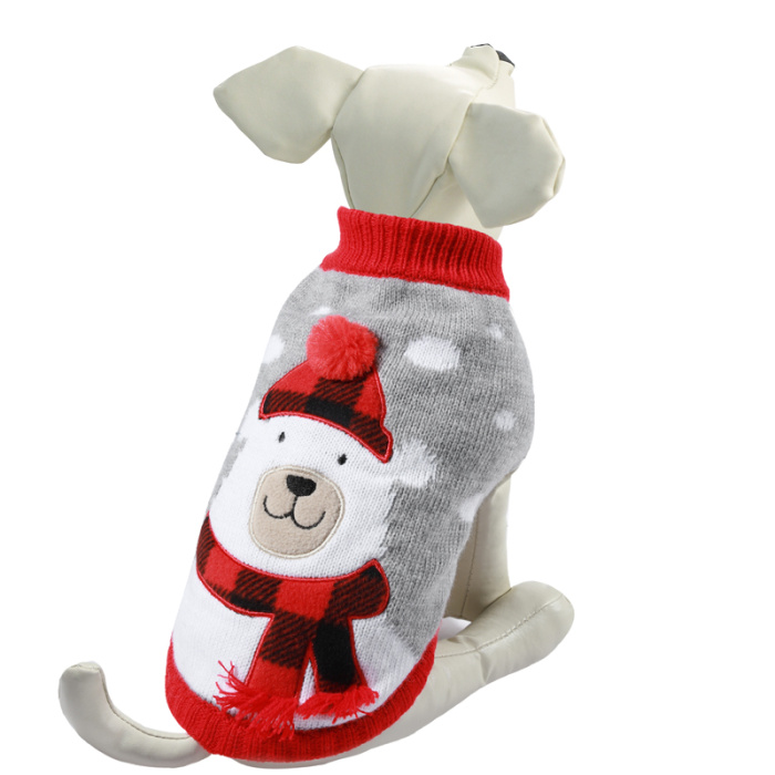 Теплый и оригинальный свитер с изображением белого мишки - это удобный и функциональный аксессуар для собак, который просто незаменим в холодную погоду. Изделие защитит вашего питомца от ветра и согреет в непогоду. Свитер имеет стильный дизайн, а универсальный фасон не стесняет движений питомца во время прогулки. Такой свитер с яркой аппликацией станет украшением гардероба вашего питомца. Материал: акрил. Цвет: серо-белый.