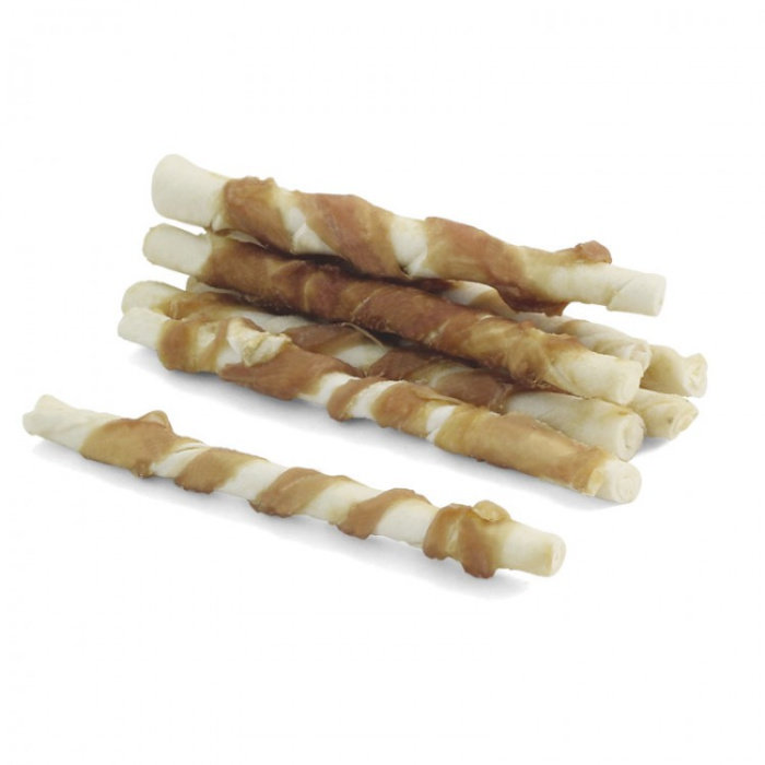Жевательные палочки с курицей для собак — это полезное лакомство, которое помогает предотвратить образование зубного камня, тренирует челюстные мышцы и укрепляет костные ткани. Мясо курицы в составе способствует повышению иммунитета и поддержанию мышечной массы. Это угощение рекомендуется для взрослых собак и щенков старше трех месяцев.
