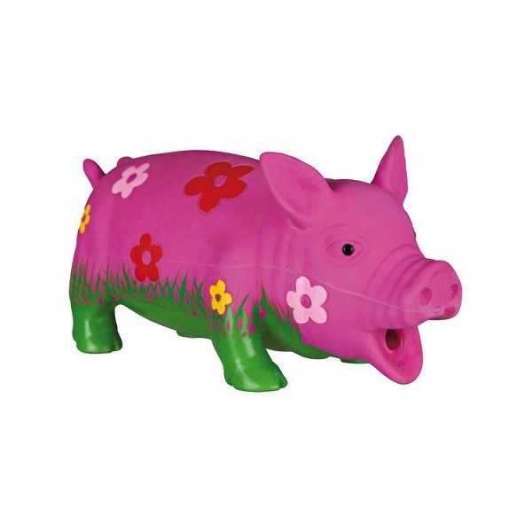 Внутри яркой свинки спрятано специальное устройство, издающее задорный писк, который позабавит любимца и еще больше раззадорит его. Забавный цветочный рисунок добавил яркой свинке очарования, она вызовет улыбку у каждого, кому попадется на глаза. Будьте уверены: Ваш питомец не захочет и на минуту оставить с