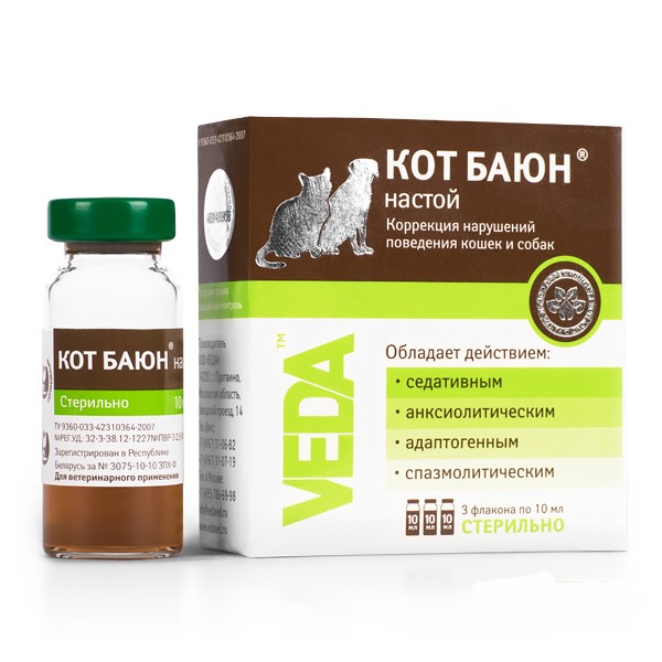 Применяют внутрь (взбалтывая перед употреблением) кошкам по 2 мл (0,5 чайной ложки), собакам по 4 мл (1 чайную ложку) 3 – 4 раза в день в течение 5 – 7 дней. При необходимости курс дачи препарата повторяют. Кот Баюн не содержит консервантов, поэтому при его применении следует соблюдать следующие требования: флакон откупоривают, надевают на его горловину крышку-капельницу и вводят препарат в ротовую полость животного надавливанием на пипетку.