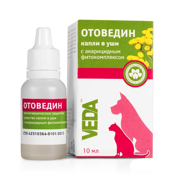 Отоведин обладает контактно-кишечным акарицидным действием, активен в отношении саркоптоидных клещей - возбудителей отодектоза кошек, собак и пушных зверей. Входящие в состав препарата активные компоненты оказывают акарицидное, противомикробное и противовоспалительное действие. Препарат относится к группе малотоксичных для теплокровных животных соединений. В рекомендуемых дозах не оказывает кожно-резорбтивного и сенсибилизирующего действия. Препарат токсичен для рыб и пчел.