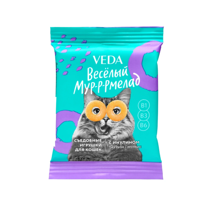 Назначение: «ВЕСЕЛЫЙ МУР-Р-РМЕЛАД» съедобные игрушки (лакомство) для кошек представляет собой дополнительный функциональный корм для непродуктивных животных, предназначенный для использования в качестве лакомства с целью поощрения и дрессуры животных.