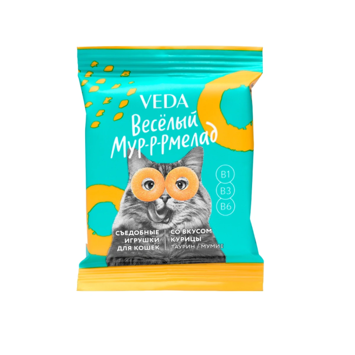 Назначение: «ВЕСЕЛЫЙ МУР-Р-РМЕЛАД» съедобные игрушки (лакомство) для кошек представляет собой дополнительный функциональный корм для непродуктивных животных, предназначенный для использования в качестве лакомства с целью поощрения и дрессуры животных.
