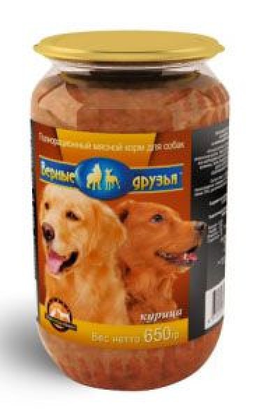 У производителей корма "Верные друзья" традиционный взгляд на кормление собак. Мы гарантируем, что наши корма готовятся из натурального отечественного свежего мяса, моркови и качественных субпродуктов (сердца, печени, рубца).