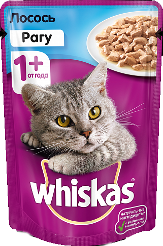 Консервы для кошек Whiskas Рагу с Лососем и Форелью — это оптимальный влажный корм для взрослых кошек, который порадует их великолепным вкусом и качеством. 80% мясных ингредиентов в каждом кусочке, отсутствие в составе сои, консервантов, ароматизаторов, усилителей вкуса и искусственных красителей придется по душе даже самому заядлому гурману.